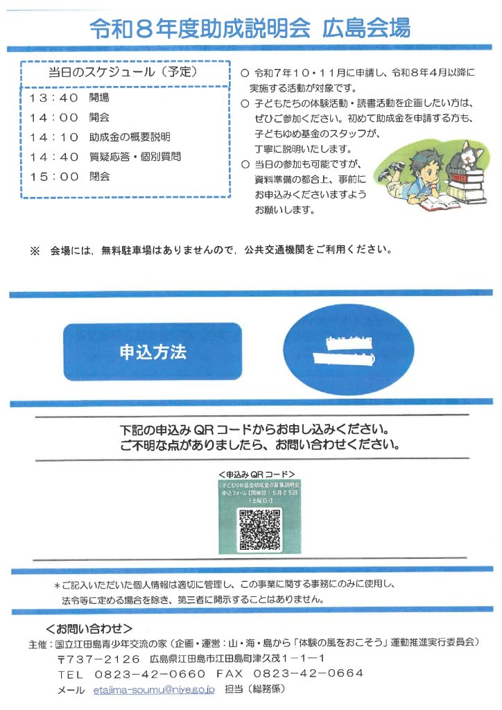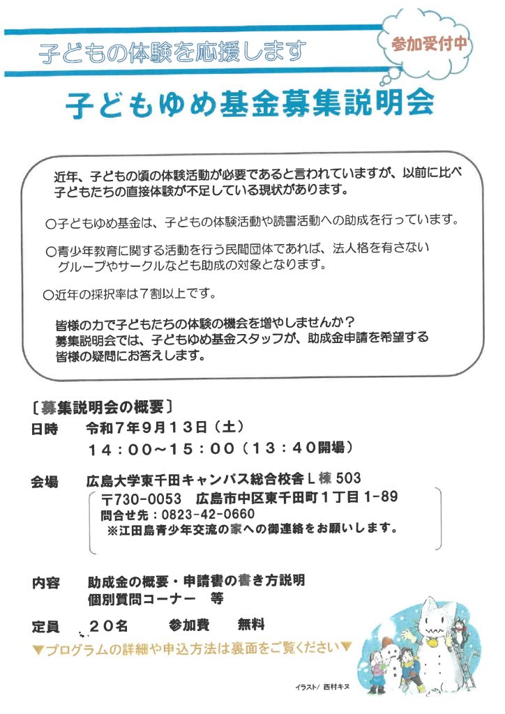 子どもゆめ基金助成活動募集説明会(9/13開催・広島)