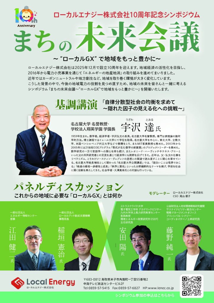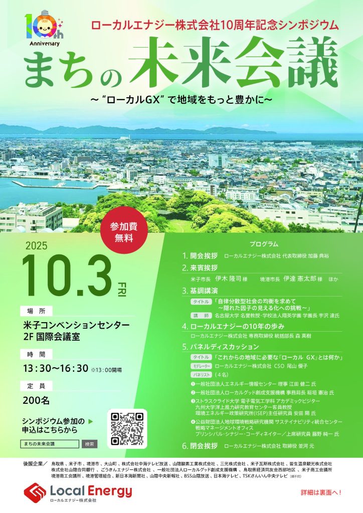 ローカルエナジー株式会社10周年記念シンポジウム 「まちの未来会議 ~“ローカルGX”で地域をもっと豊かに~」(10/3開催・鳥取)