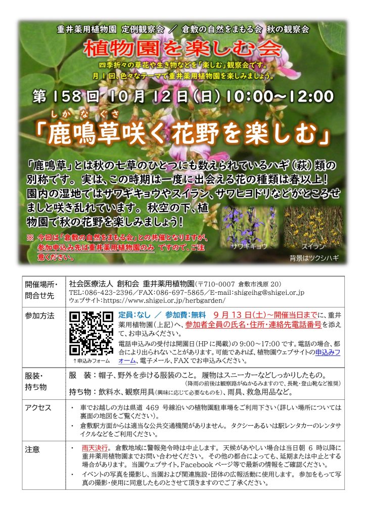 ※参加者全員の氏名、住所、連絡先電話番号をご記載ください。主催:重井薬用植物園、倉敷の自然をまもる会