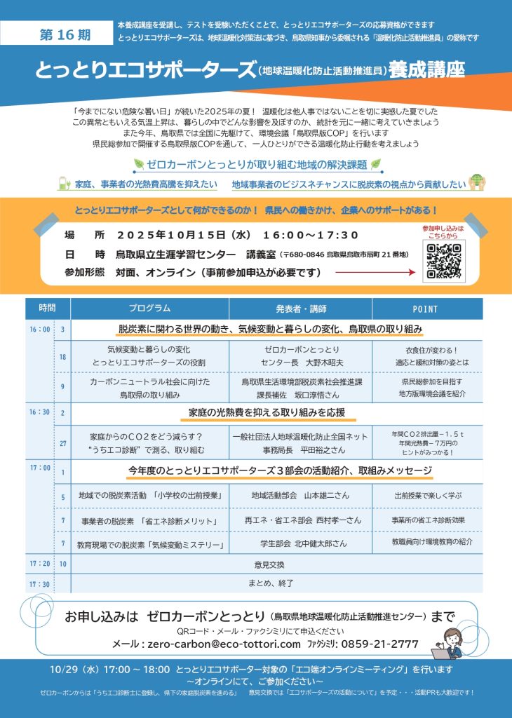 第16期とっとりエコサポーターズ養成講座(10/15開催・鳥取オンライン)