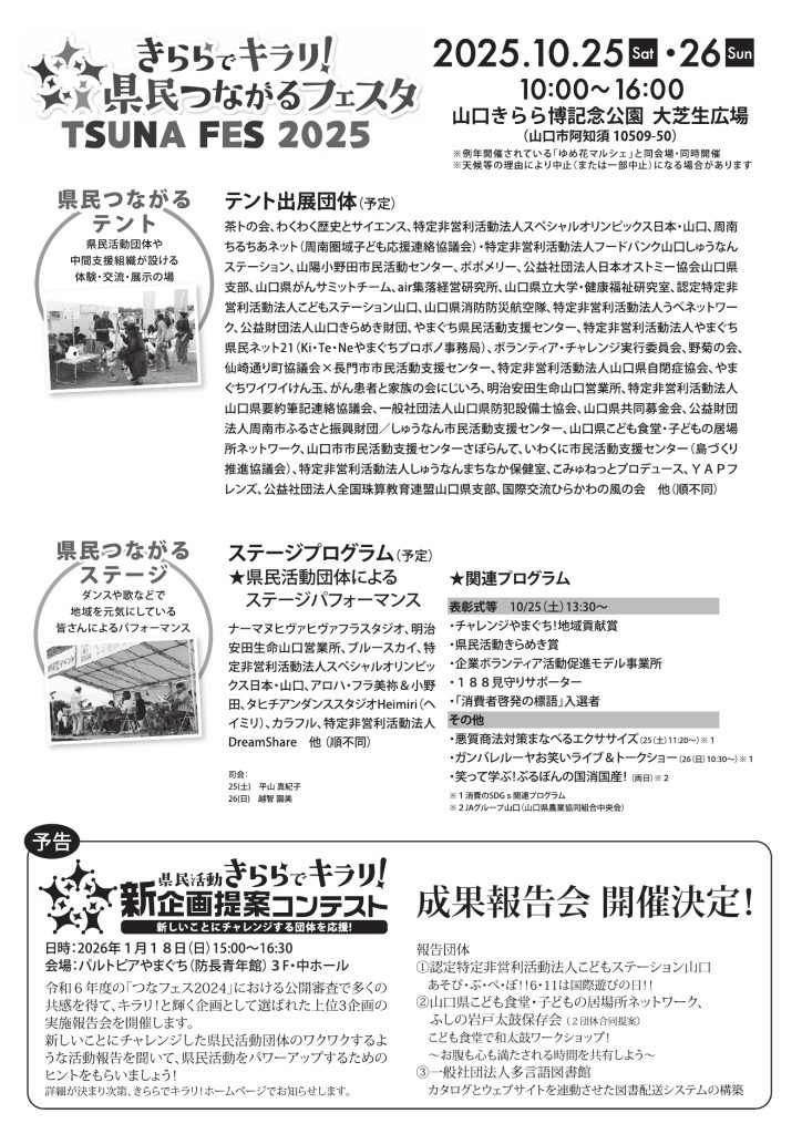 きららでキラリ!県民つながるフェスタ TSUNA FES 2025(10/25-26開催・山口)