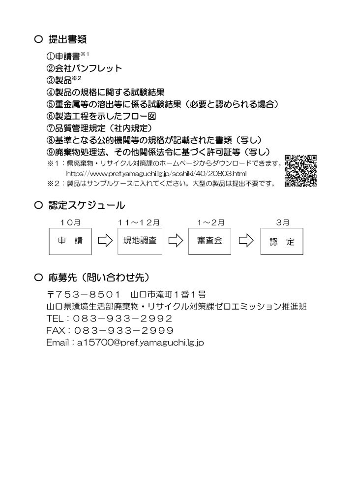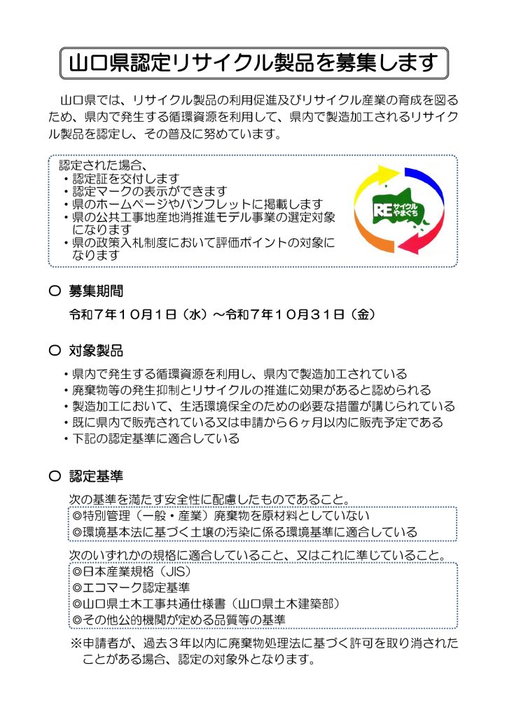 ・下記の認定基準に適合している。山口県リサイクル製品利用促進要綱 (PDF:161KB)