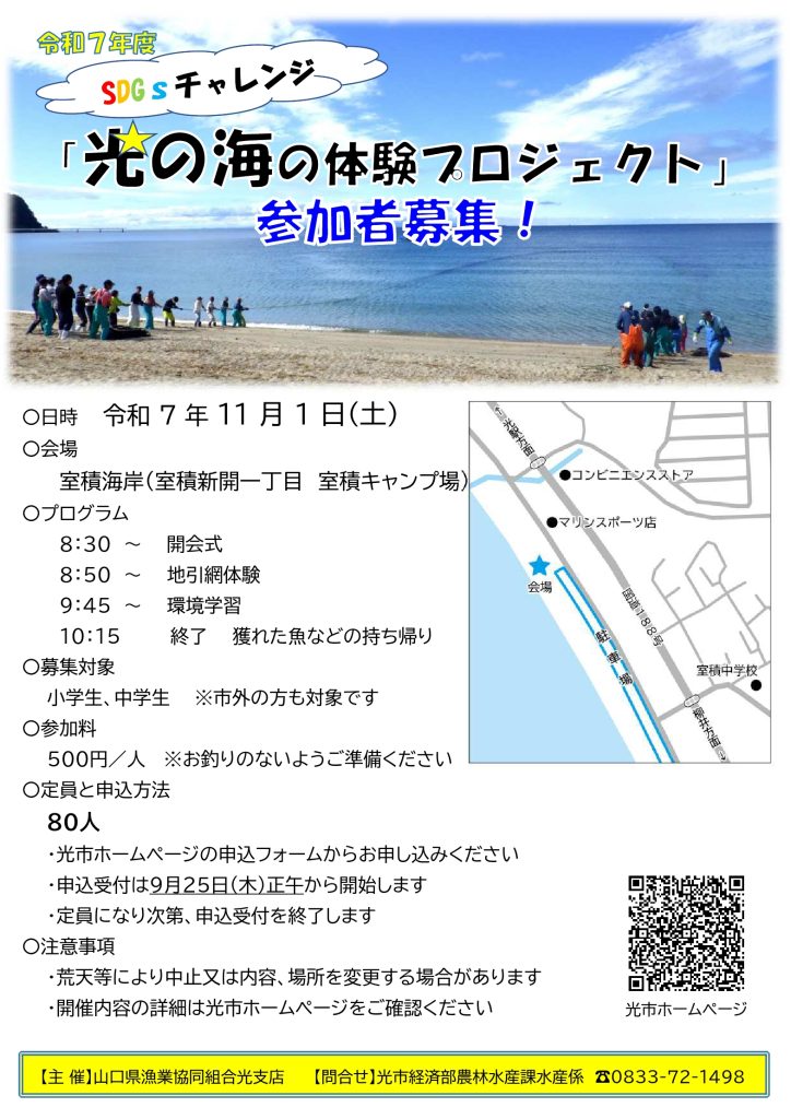 令和7年度SDGsチャレンジ「光の海の体験プロジェクト」(11/1開催・山口)