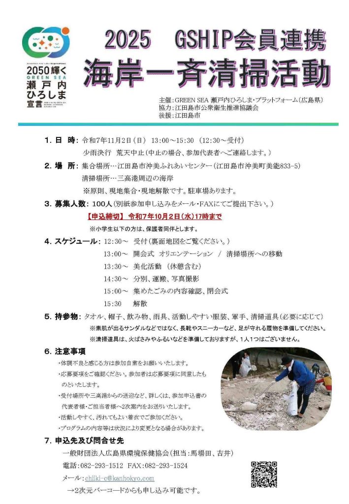 ご参加いただける方は、https://gship.jp/cleanup/2244/ に掲載されているチラシの二次元コードからお申し込みください。