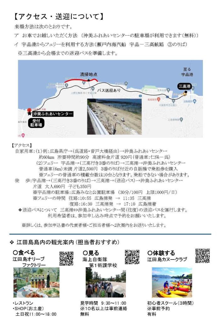 集合:江田島市沖美ふれあいセンター(江田島市沖美町美能833-5)
