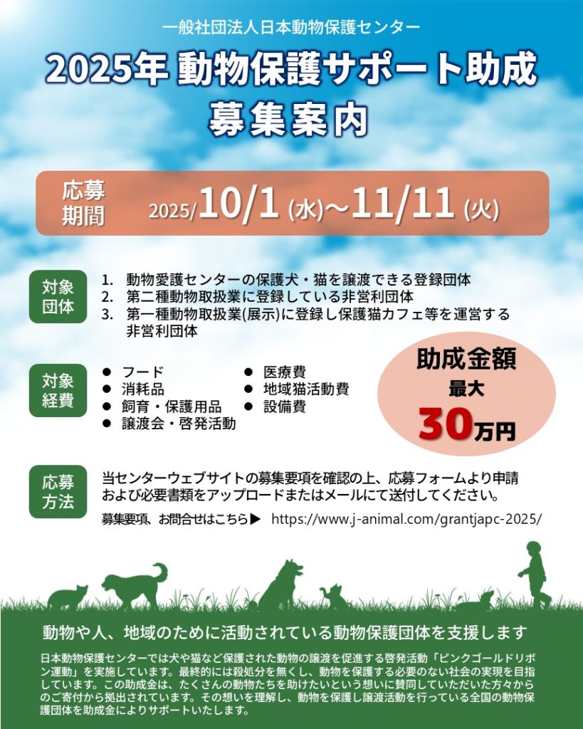 募集要項ページ:https://www.j-animal.com/grantjapc-2025/