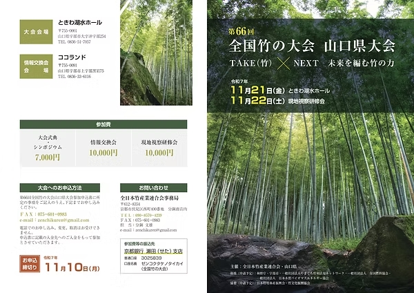 第66回全国竹の大会 山口大会(11/21-22開催、11/10締切・山口)