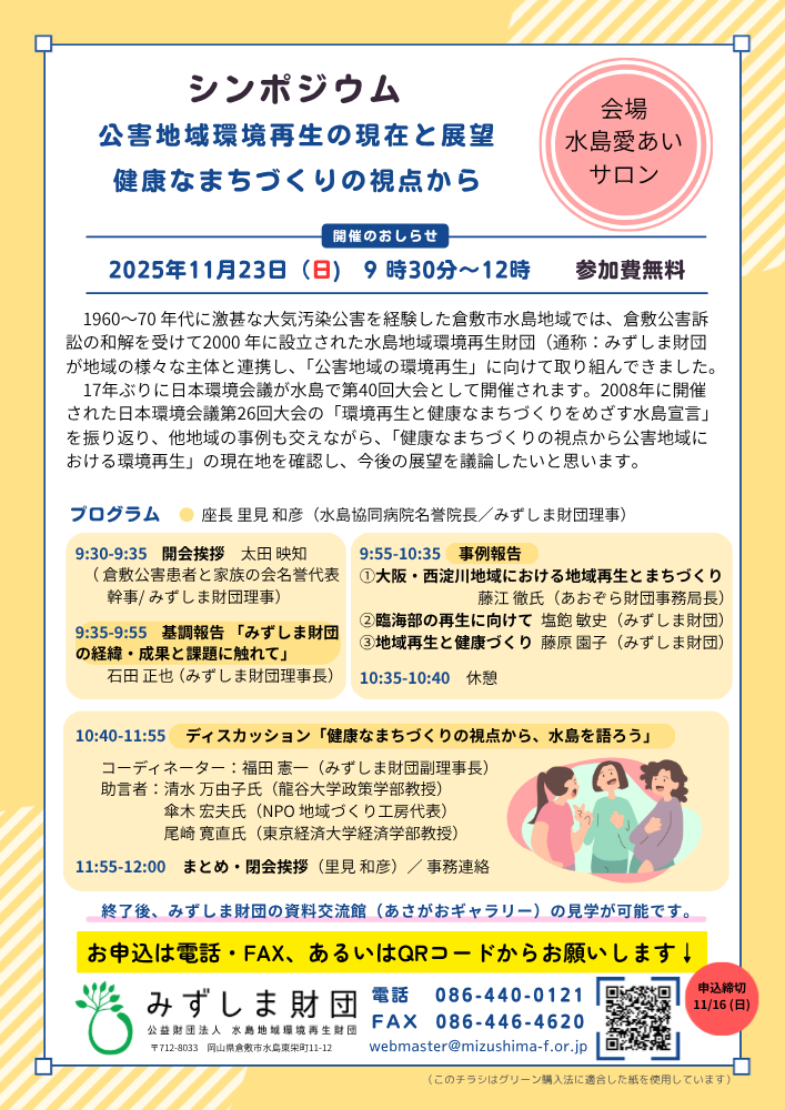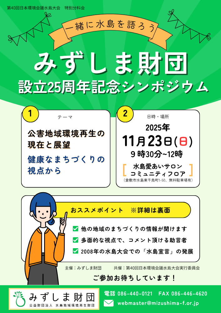 みずしま財団設立25周年記念シンポジウム(11/23開催、11/16締切・岡山)