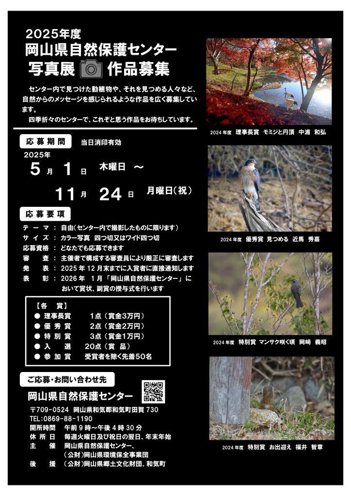 ・岡山県自然保護センター内で2024年11月3日以降に撮影された未発表作品とします。