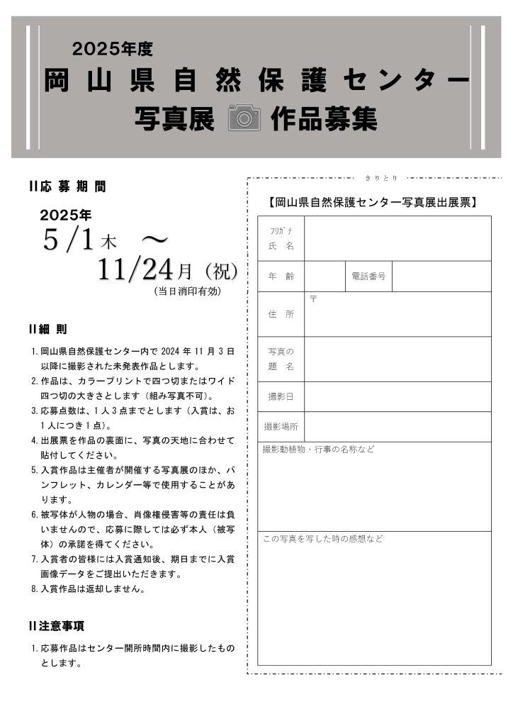 2025年度 岡山県自然保護センター写真展(11/24締切・岡山)