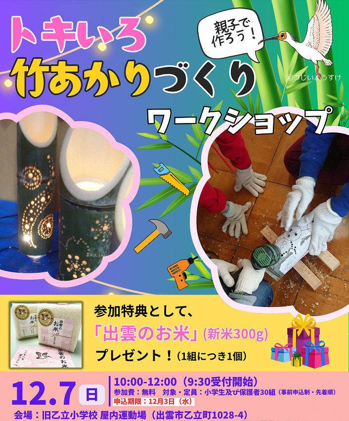 トキ色竹あかりづくりワークショップ(12/7開催、12/3締切・島根)