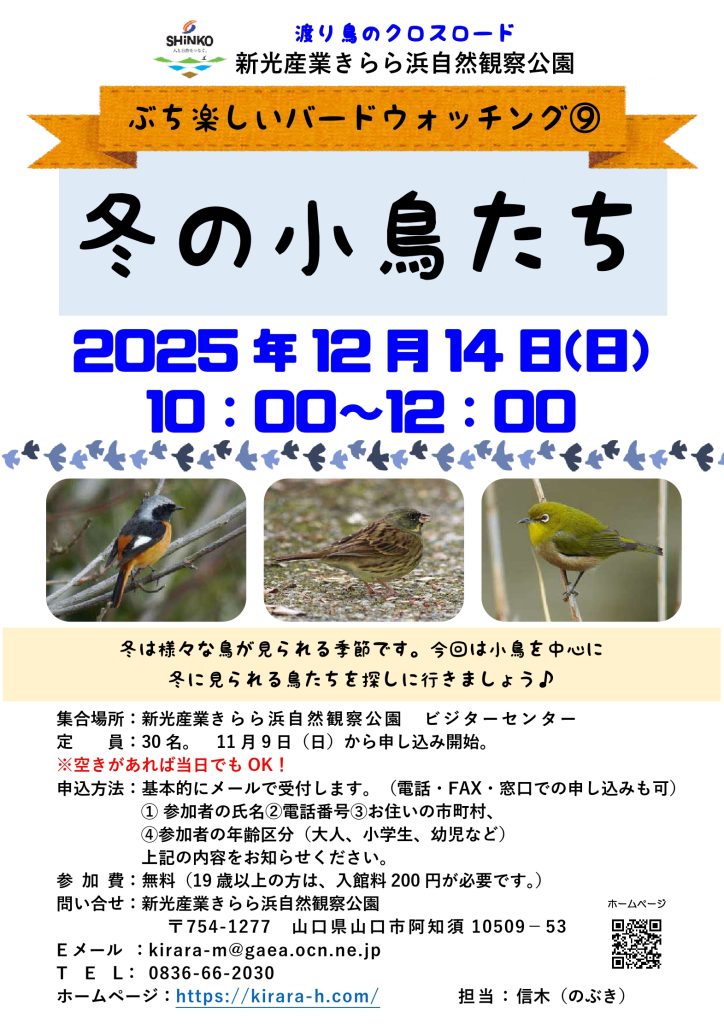 ぶち楽しいバードウォッチング⑨ 冬の小鳥たち(12/14開催・山口)