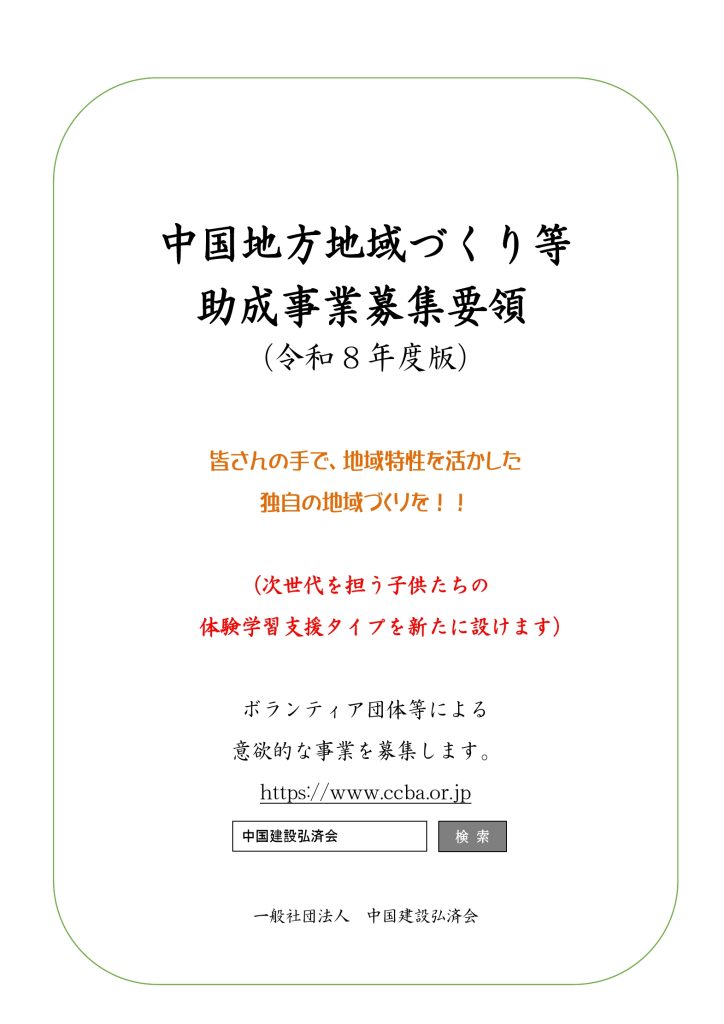令和8年度 中国地方地域づくり等助成事業 次世代を担う子供たちの体験学習支援タイプ(12/15締切・中国地方)