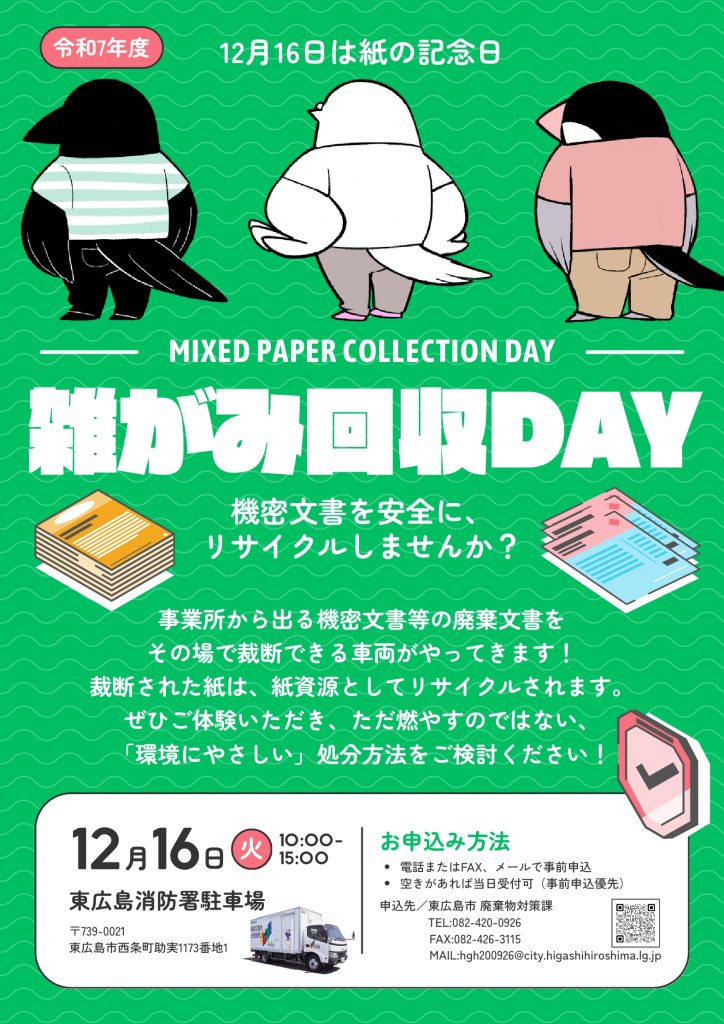 雑がみ回収DAY(廃棄文書資源化処理体験イベント)(12/16開催・広島)