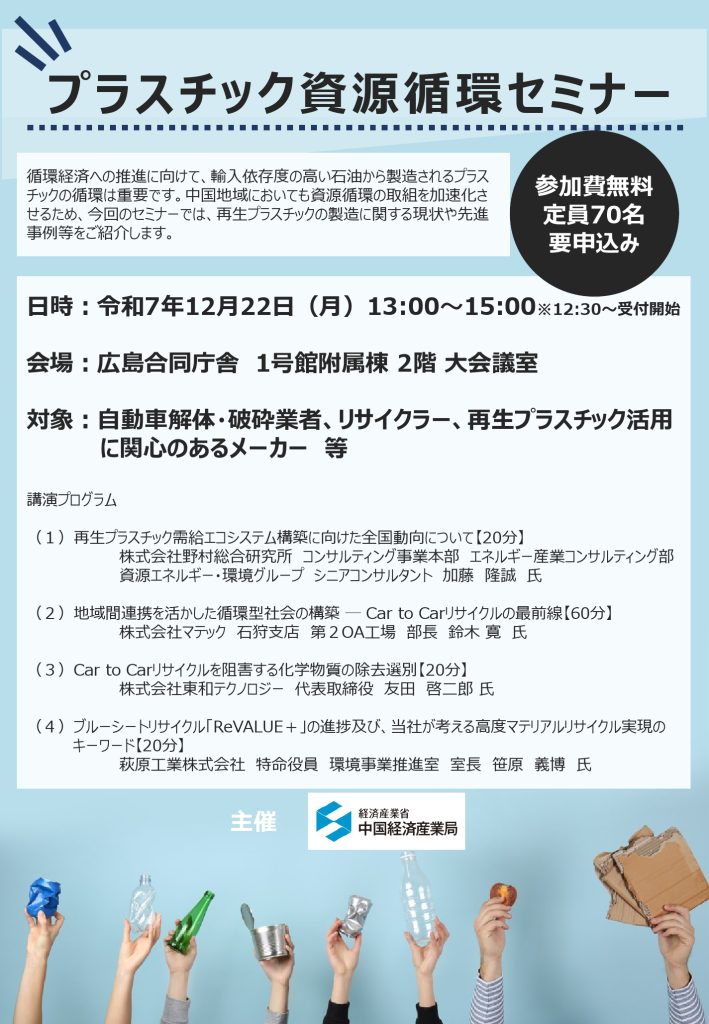 プラスチック資源循環セミナー(12/22開催、12/15締切・広島)