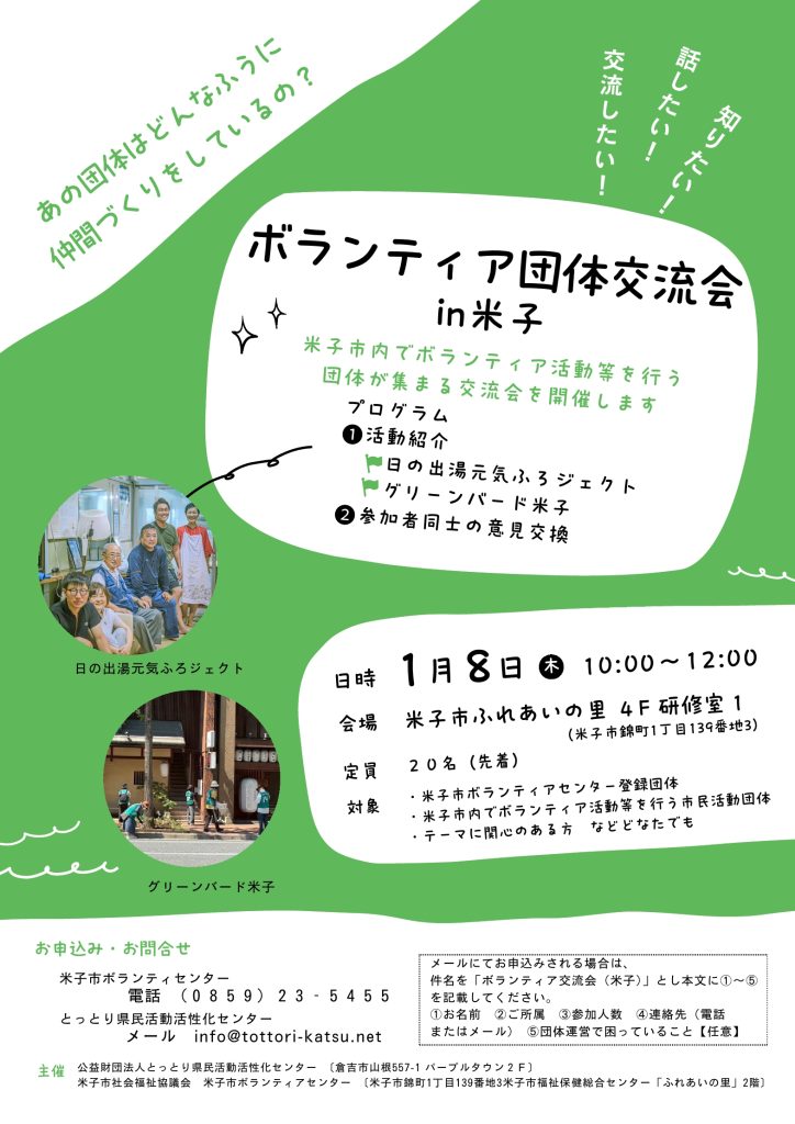 ボランティア団体交流会 in 米子(1/8開催・鳥取)