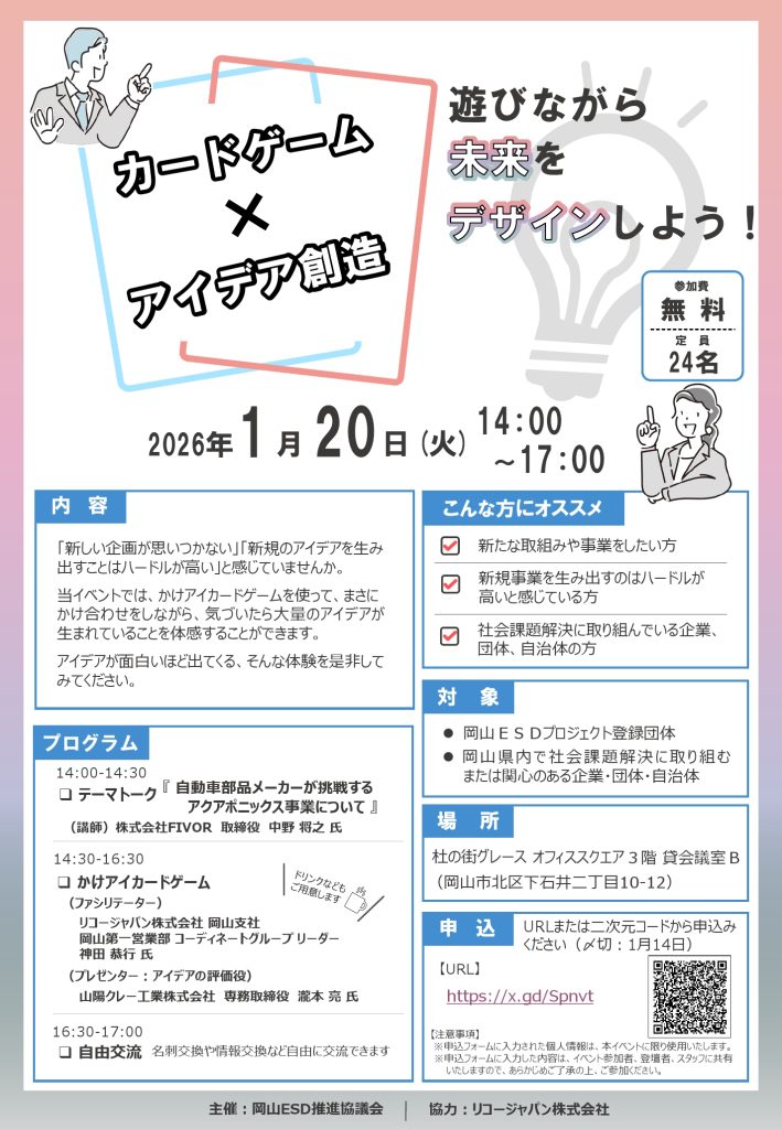『カードゲーム×アイデア創造』遊びながら未来をデザインしよう!(1/20開催、1/14締切・岡山)