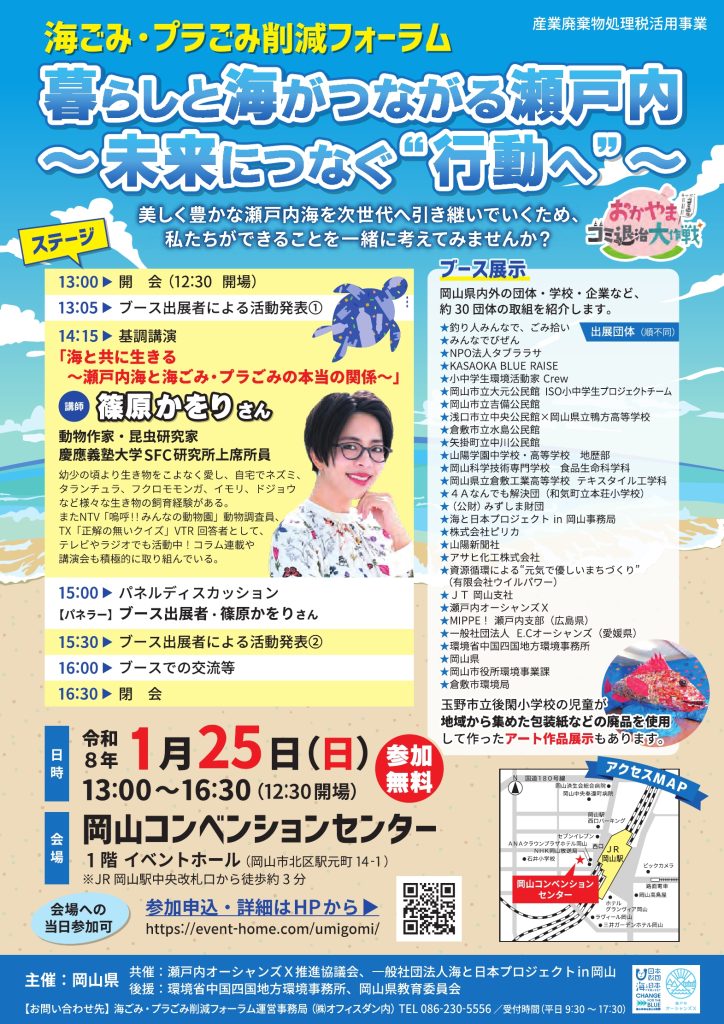 海ごみ・プラごみ削減フォーラム(1/25開催・岡山)
