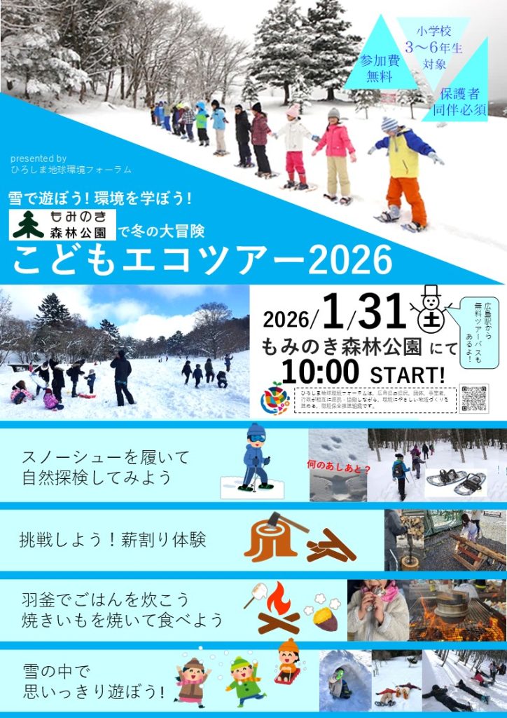 もみのき森林公園で冬の大冒険 こどもエコツアー2026(1/31開催、1/16締切・広島)
