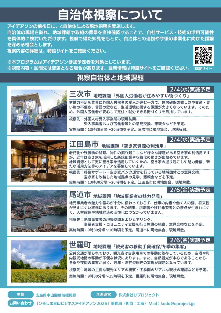 アイデアソンの前後日(2/4および2/6)には、4自治体による現場視察を実施します。