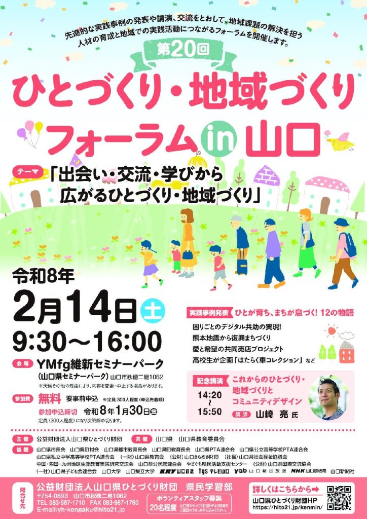 第20回ひとづくり・地域づくりフォーラム in 山口(2/15開催、1/30締切・山口)
