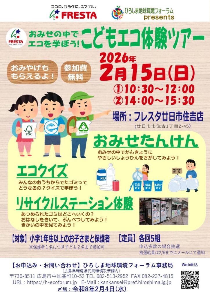令和7年度「おみせの中でエコを学ぼう!こどもエコ体験ツアー」(2/15開催、2/4締切・広島)