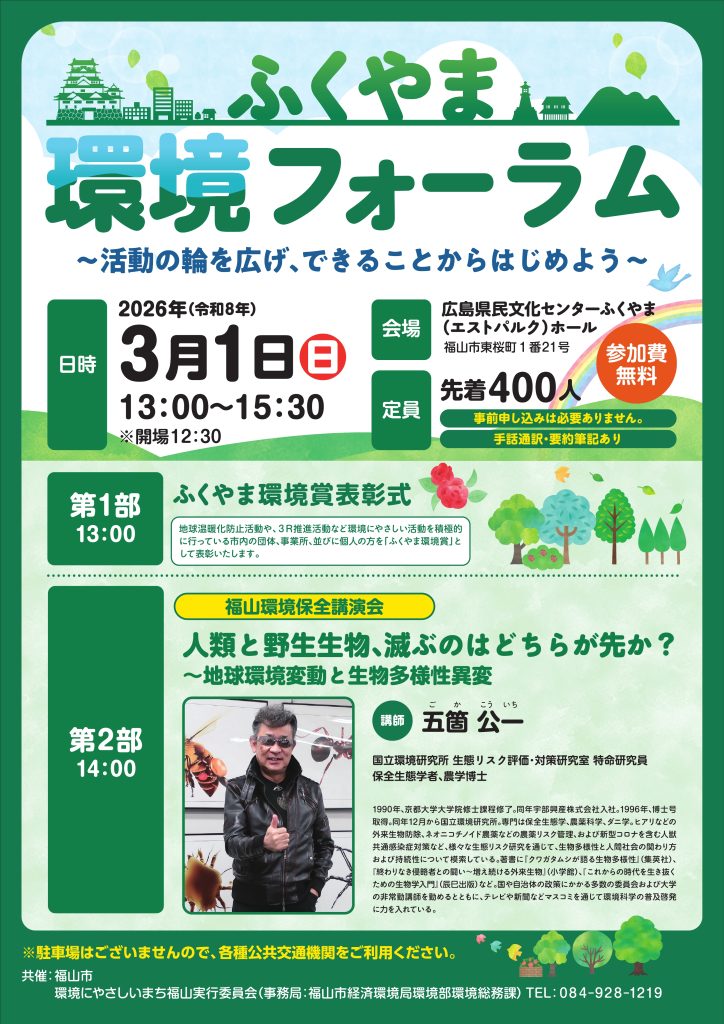 ふくやま環境フォーラム ~活動の輪を広げ、できることからはじめよう!~(3/1開催・広島)
