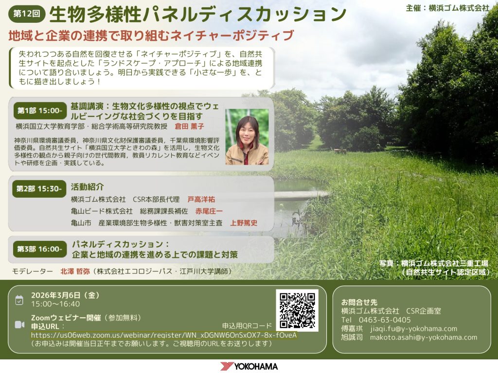 生物多様性パネルディスカッション(地域と企業の連携で取り組むネイチャーポジティブ)(3/6開催・オンライン)
