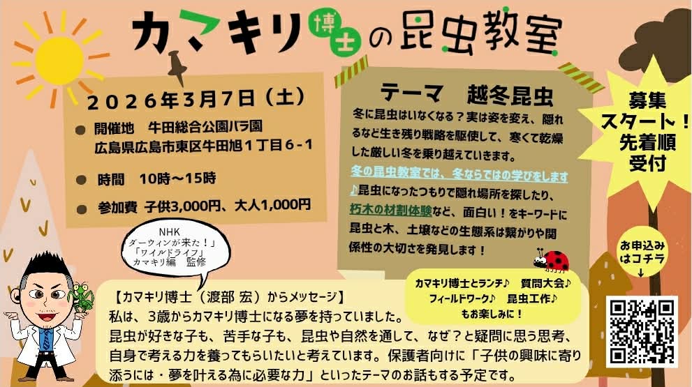 親子で学ぶ!カマキリ博士の昆虫教室(3/7開催・広島)