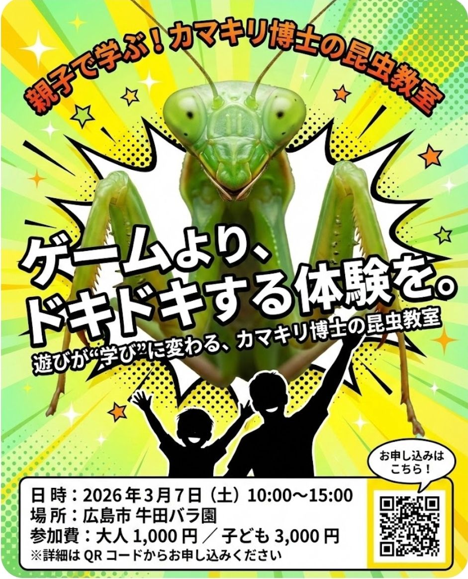 親子で学ぶ!カマキリ博士の昆虫教室(3/7開催・広島)