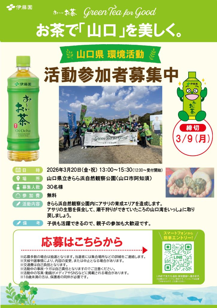 Green Tea for Good「お茶で山口を美しく。」 環境保全活動(3/20開催、3/9締切・山口)