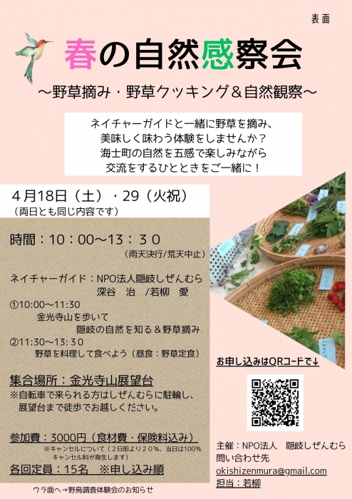 春の自然感察会~野草摘み・野草クッキング&自然観察~(4/29開催・島根)