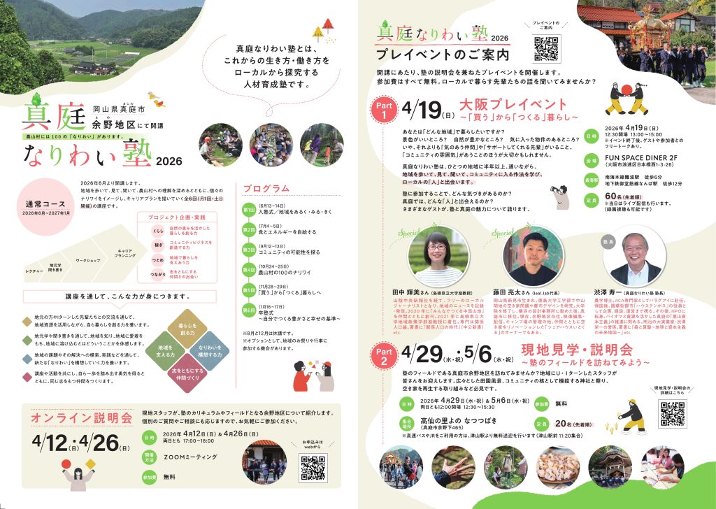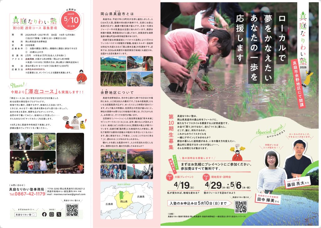 詳しくは、真庭なりわい塾ホームページ(https://maniwa-nariwai.org/)をご覧下さい。