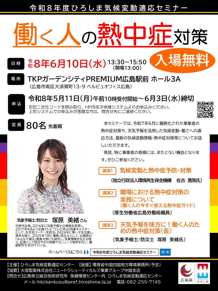 令和8年度ひろしま気候変動適応セミナー(6/10開催、6/3締切・広島)