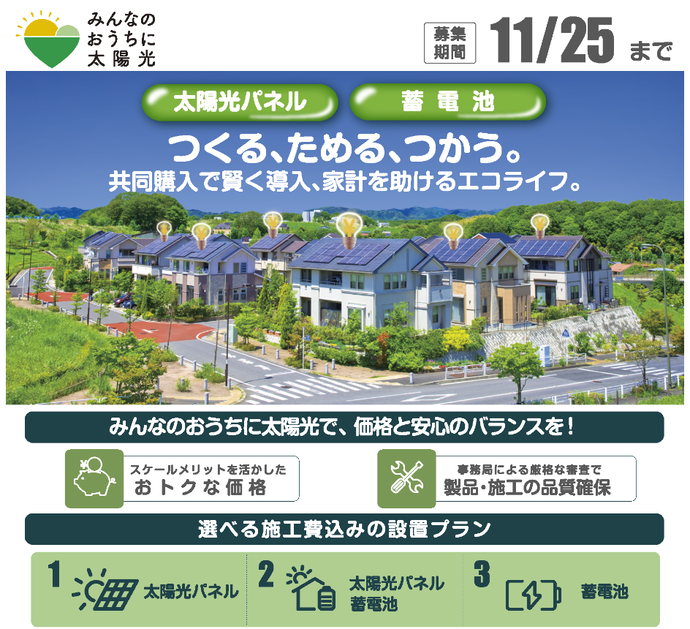 山口県では「ぶちエコやまぐち太陽光発電設備等共同購入事業」として、令和8年4月28日から11月25日まで太陽光パネル・蓄電池の「共同購入事業」の参加者を募集しています。