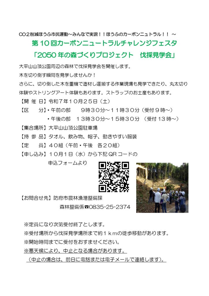第10回カーボンニュートラルチャレンジフェスタ「2050年の森づくりプロジェクト伐採見学会」(10/25開催・山口)