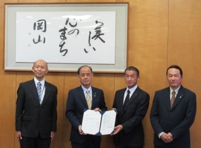 【写真】岡山市役所市長室での認定証の伝達