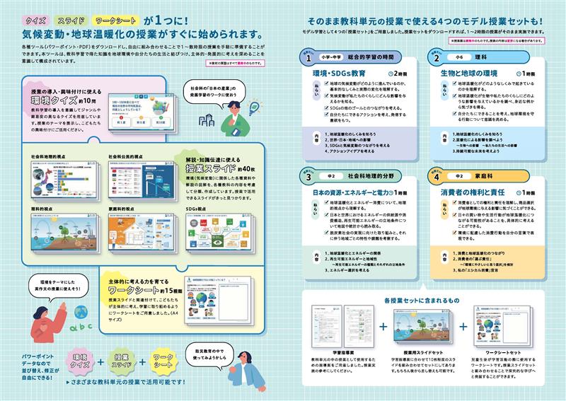 リーフレットもぜひご覧いただき、ご活用いただけますと幸いです。未来の地球を守る教育の普及に、皆さまのご支援をよろしくお願いいたします。