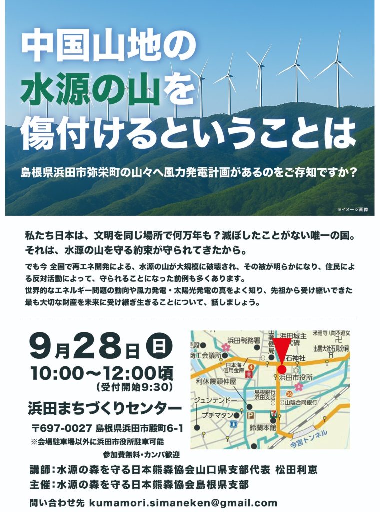 今、浜田弥栄の山へ風力発電計画があるのをご存知ですか?