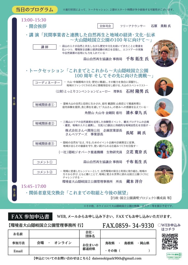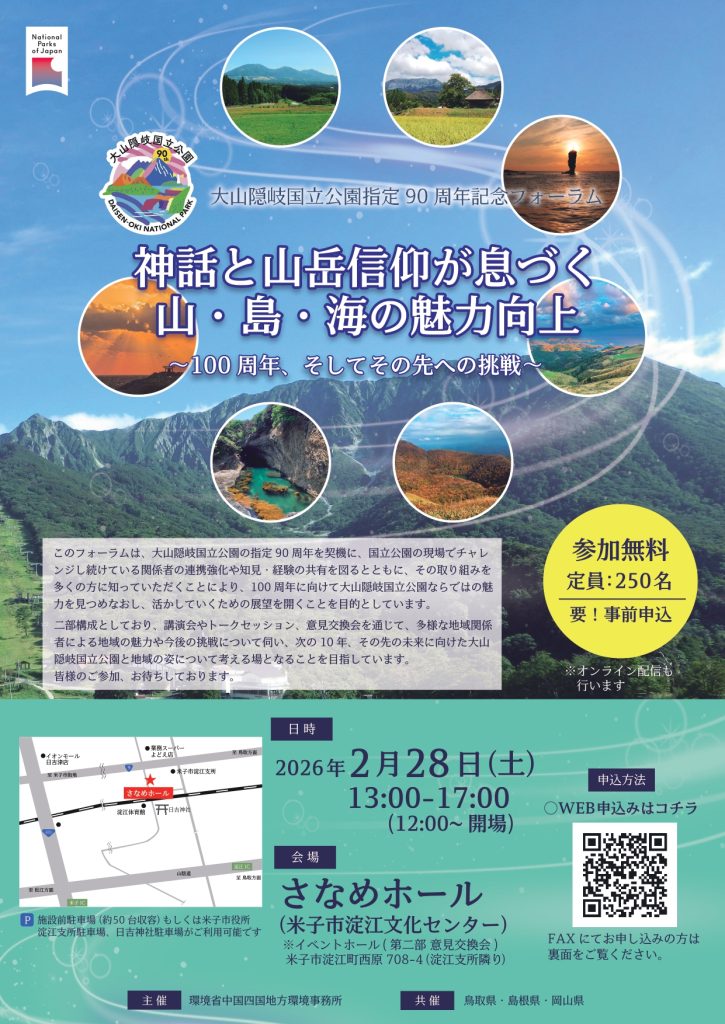 大山隠岐国立公園指定90周年フォーラム開催について(2/28開催、2/20締切・鳥取+オンライン)