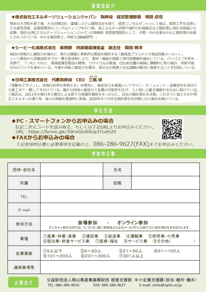 脱炭素経営促進セミナー「会社の未来をつくる!脱炭素経営」(11/27開催、11/21締切・岡山+オンライン)