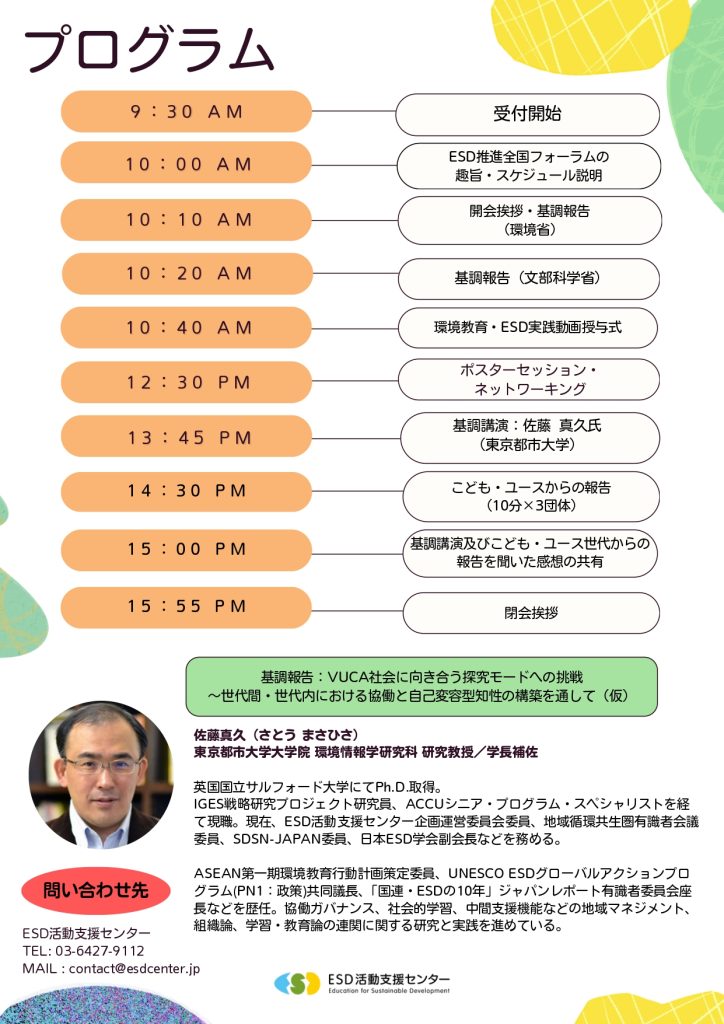環境省は、ESD 推進ネットワーク全国フォーラム 2025 を、文部科学省及び ESD 活動支援センターと共催で、令和7年 12 月7日(日)に立教大学池袋キ ャンパスにて開催します。「SDGs 達成の鍵」とされている ESD に関わる学校・ 団体・企業等、全国各地から多くの方々のご参加をお待ちしています。