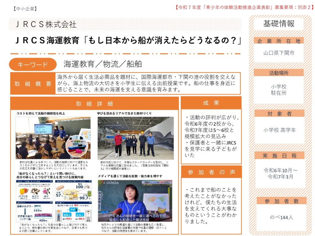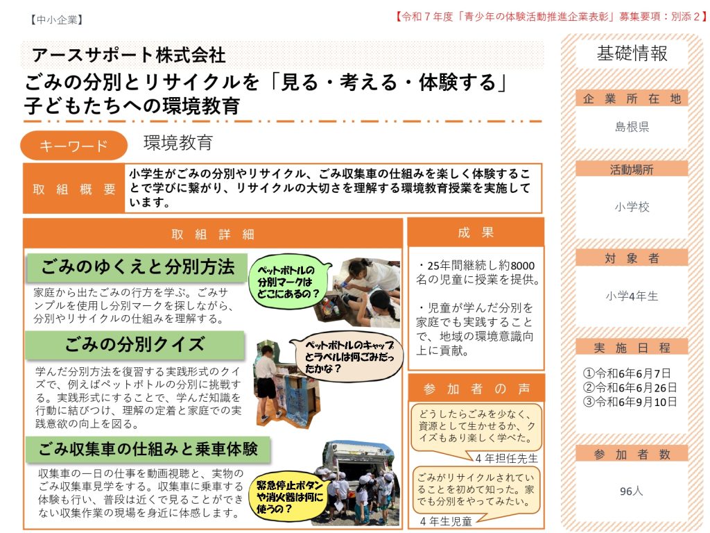 令和7年度 いーたいけんアワード(青少年の体験活動推進企業表彰)~参加申込フォーム~ (google.com)