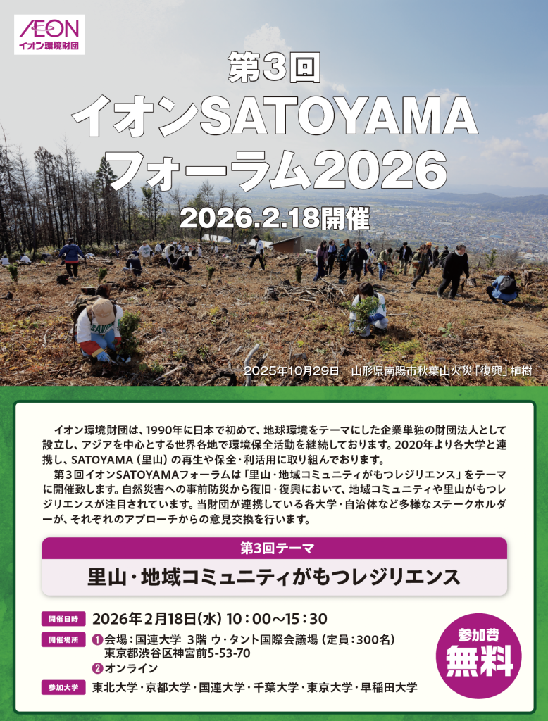第3回 イオンSATOYAMAフォーラム(2/18開催、2/8締切・東京+オンライン)