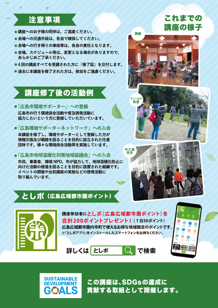 講座参加者に「としポ(広島広域都市圏ポイント)」を合計200ポイントプレゼント(1日50ポイント)
