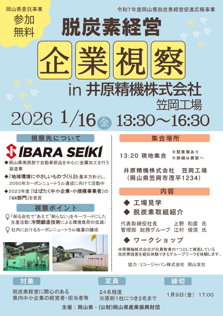 脱炭素経営 企業視察 in 井原精機株式会社 笠岡工場(1/16開催、1/9締切・岡山)