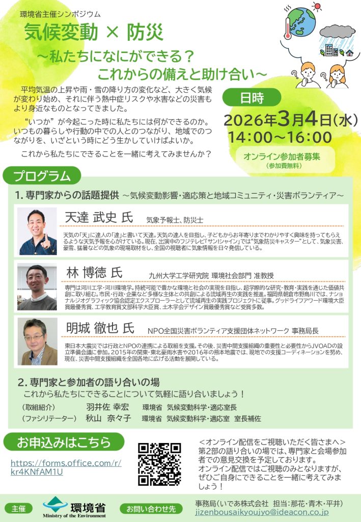 「気候変動×防災 ~私たちになにができる?これからの備えと助け合い~」の開催について(3/4開催・全国)