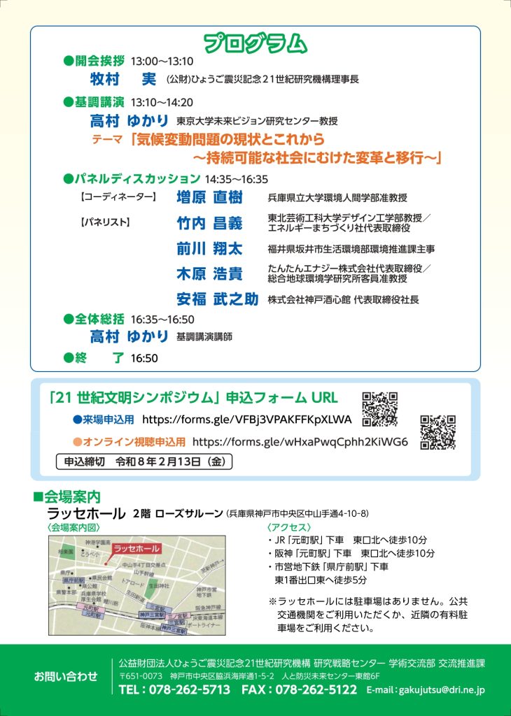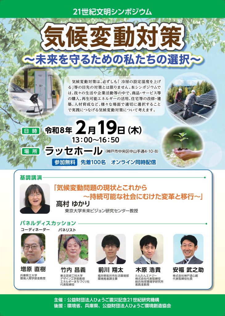21世紀文明シンポジウム 「気候変動対策~未来を守るための私たちの選択~」(2/19開催、2/13締切・兵庫+オンライン)