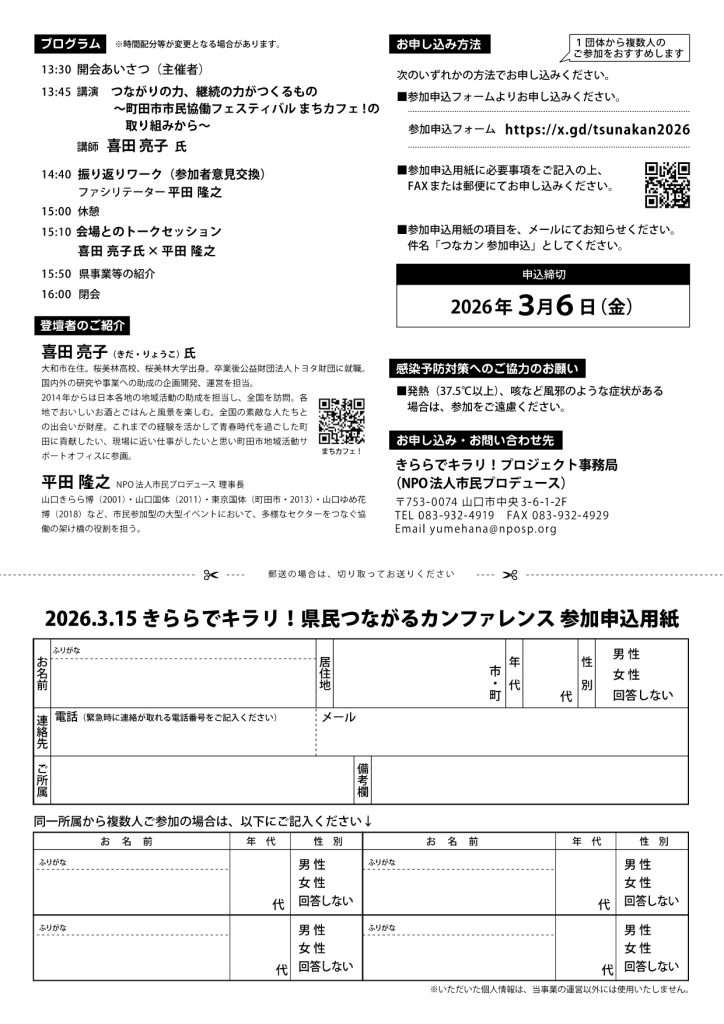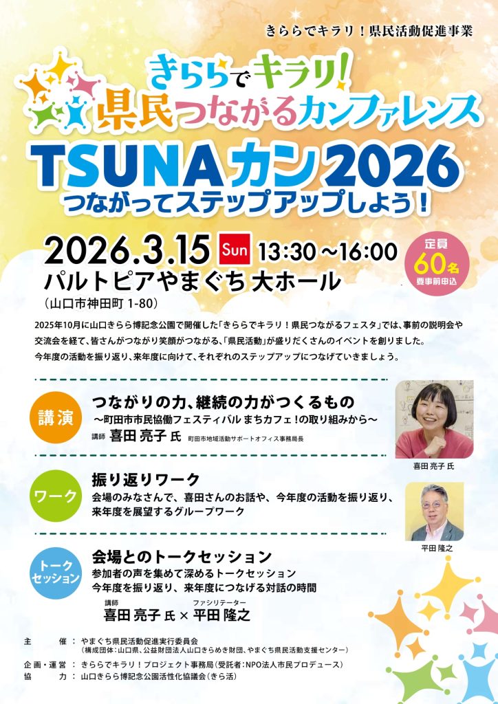 きららでキラリ!県民つながるカンファレンス TSUNAカン 2026(3/15開催、3/6締切・山口)