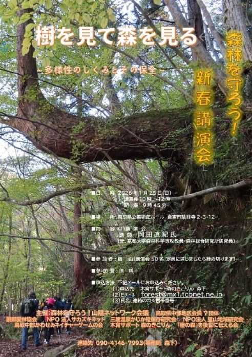 森林を守ろう!新春講演会 『樹を見て森を見る 〜多様性の仕組みとその保全〜』(1/25開催・鳥取)